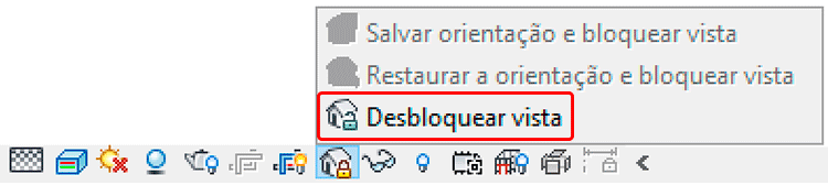 Ao clicar sobre o botão Vista 3D Bloqueada, terão 3 opções de contexto, isso é, de acordo com o contexto da ação, uma opção se torna disponível. Como no seu caso você vai bloquear a vista, somente a opção Salvar orientação e bloquear vista estará disponível.