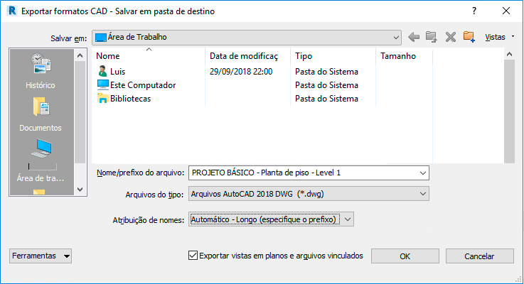 Desta forma para cada vista o Revit irá gerar um arquivo separado. Porém nada impede que você copie as vistas desejadas e cole em um arquivo único ou utilize o sistema Xref para agrupar todos.