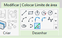 Ao clicar na ferramenta Limite de área você será direcionado para a aba Modificar|Colocar limite de área que vai permitir que você utilize as ferramentas de desenho por croqui.